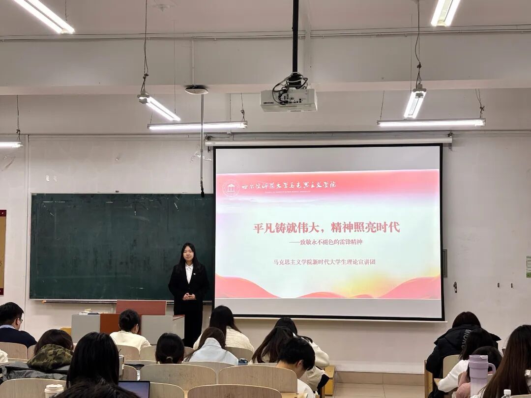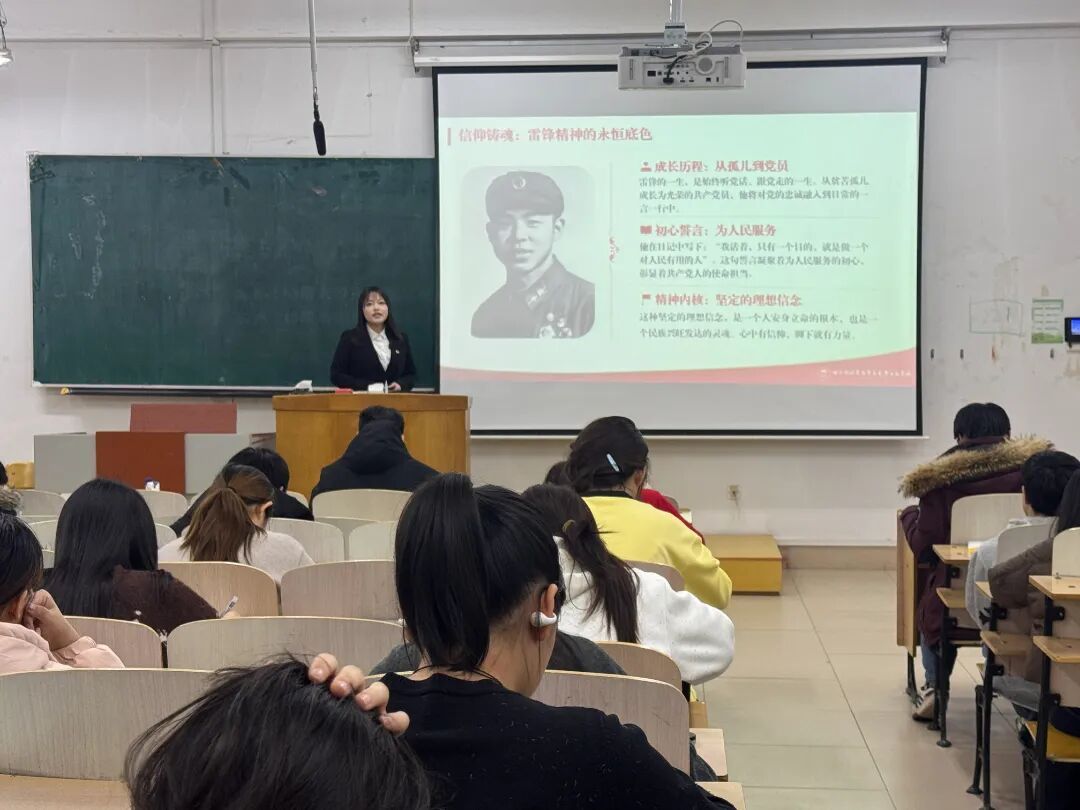 为深入学习贯彻习近平新时代中国特色社会主义思想,引导青年学子感悟雷锋精神时代内涵,从雷锋精神中汲取信仰力量、践行青春担当,马克思主义学院新时代大学生理论宣讲团于3月11日在社科楼201、202、401教室开展雷锋精神主题宣讲活动。本次宣讲由宣讲团成员2024级思想政治教育专业本科生杜海鑫、孟妍灼主讲,学院2024级、2025级全体本科生参加。