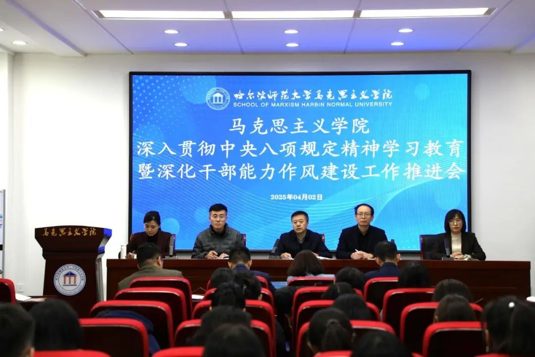 会议传达了学校深入贯彻中央八项规定精神学习教育暨深化干部能力作风建设工作推进会精神,解读了《关于在全校开展深入贯彻中央八项规定精神学习教育的实施方案》和《哈尔滨师范大学深化干部能力作风建设2025年实施方案》相关要求,学院院长刘爱军、党委副书记孙鹏飞、副院长寇鹏飞、梁巍等班子成员分别结合分管工作对学院近期重点工作进行了安排部署。