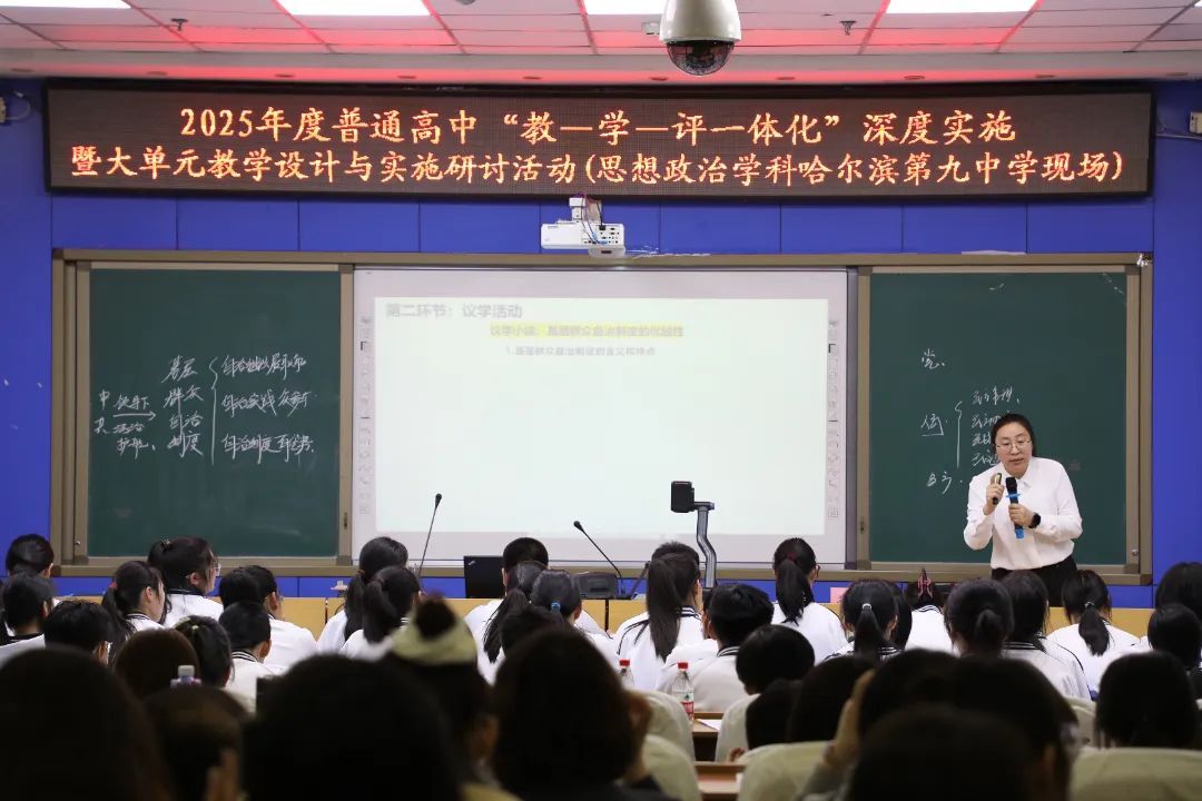 在本次见习活动中,来自牡丹江第三中学的梁静、七台河市第一中学的苏影、哈尔滨第九中学的赵苗苗老师,分别围绕《全面依法治国》《发展全过程人民民主》《保障人民当家作主》等思政核心课程展开教学展示。教师们凭借扎实深厚的专业素养,将理论知识讲解得深入浅出,巧妙融入党的二十大精神、中国式现代化等时政热点,赋予教学内容鲜活的时代气息,做到了理论性与趣味性相融合,生动展现了思政课立德树人、铸魂育人的独特魅力。
