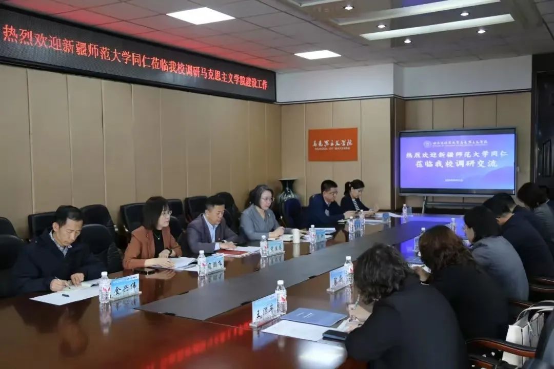 5月15日,新疆师范大学党委常委、副校长刘晨江等一行7人来我校调研马克思主义学院建设工作。我校党委副书记、工会主席郭砾陪同调研并主持调研座谈会,教育部高校思想政治工作队伍培训研修中心、科研处、马克思主义学院等相关负责同志参加座谈会。