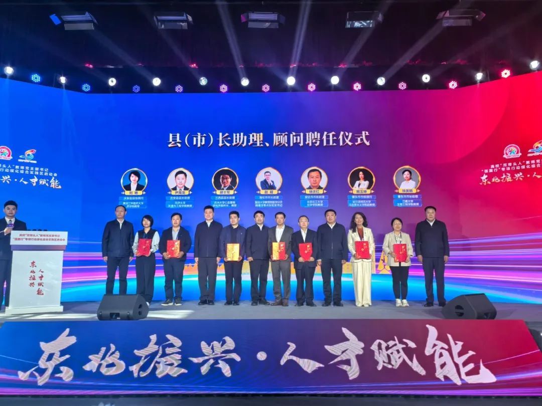 在绥化市建设专项行动全国首个综合实践区,是贯彻落实习近平总书记关于新时代人才强国战略的生动实践,是以高质量党建支撑教育发展、科技创新、人才培养的积极探索,是深化教育、科技、人才“三位一体”协同融合发展的有力抓手,旨在通过高校“双带头人”教师党支部书记“强国行”专项行动推动校地合作、赋能地方经济发展。会上,来自全国39所高校的41名“双带头人”教师党支部书记分别被聘为绥化市下属县(市)长助理、政府顾问、中小学德育和科技副校长。
