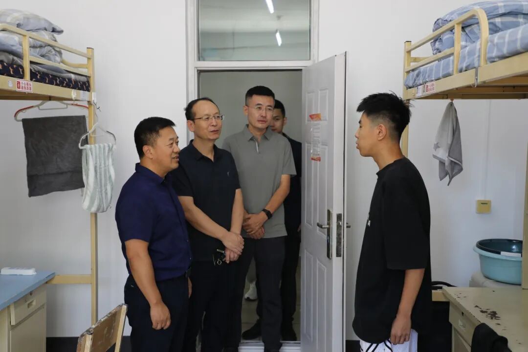 走访过程中,宋佳东书记叮嘱新生们要加强日常锻炼,养成良好作息习惯,为接下来的学习生活打下坚实基础;刘爱军院长勉励新生要积极调整心态,尽快适应新环境,树立明确学习目标,努力成长为德智体美劳全面发展的新时代青年。党委副书记孙鹏飞、副院长寇鹏飞、以及王铁石、李帅男和黄子航老师也分别围绕课程学习、寝室安全、交通与财产安全等主题与新生亲切交流,鼓励大家珍惜大学时光,扎实学好专业知识,不断提升综合素养。
