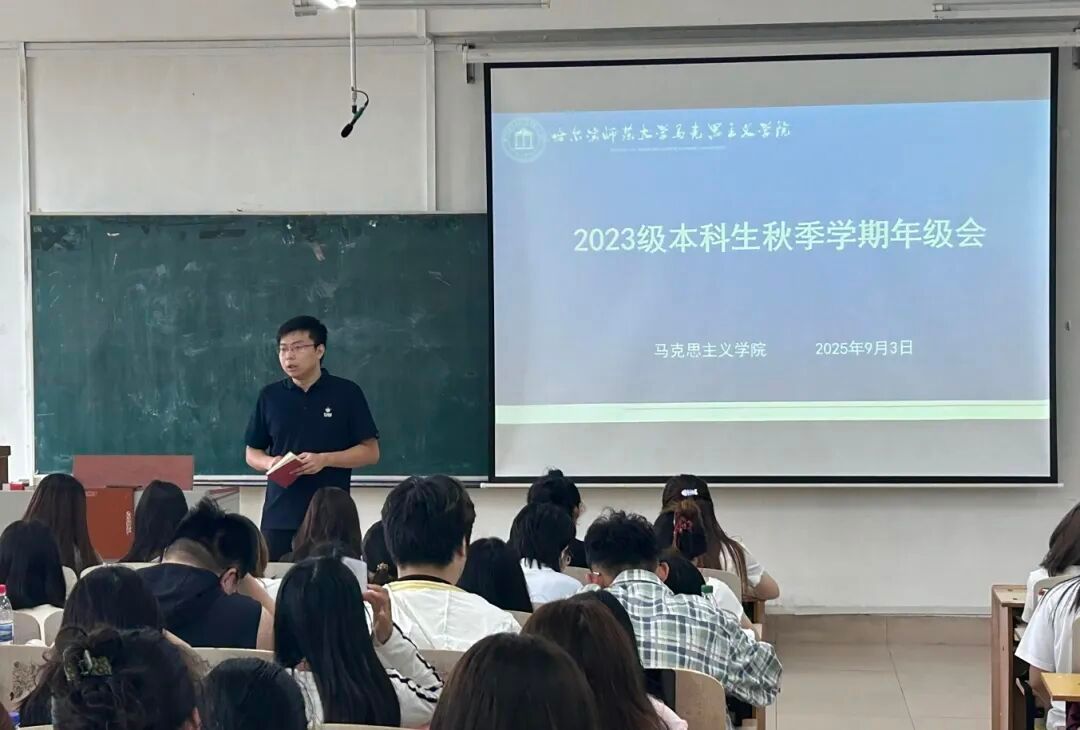 为深入学习贯彻习近平新时代中国特色社会主义思想和党的二十大和二十届三中全会精神,认真落实《哈尔滨师范大学大学生思想政治教育“112349”工作模式实施方案》要求,引导全体学生坚定理想信念、明确奋斗目标,学期伊始,马克思主义学院党委书记宋佳东、党委副书记孙鹏飞、副处级辅导员王铁石、研究生辅导员翟屿潼、团委书记兼学工办主任李帅男、辅导员黄子航分别深入各年级、班级,面向学院全体本、硕、博学生讲授“开学第一课”。