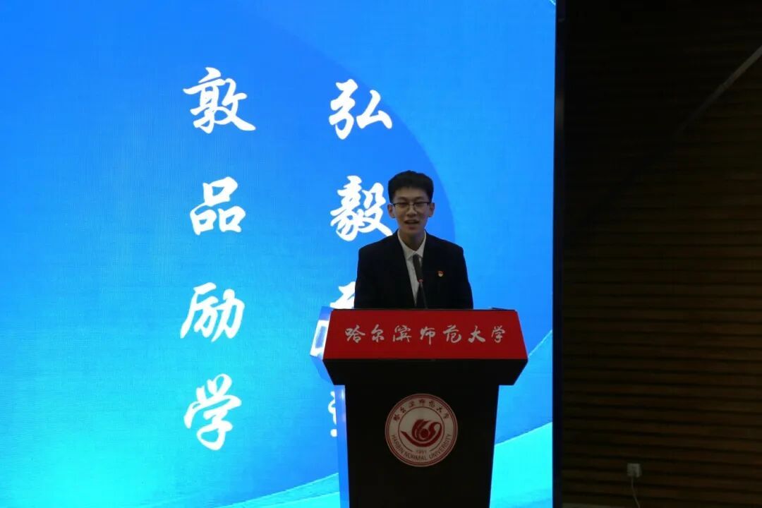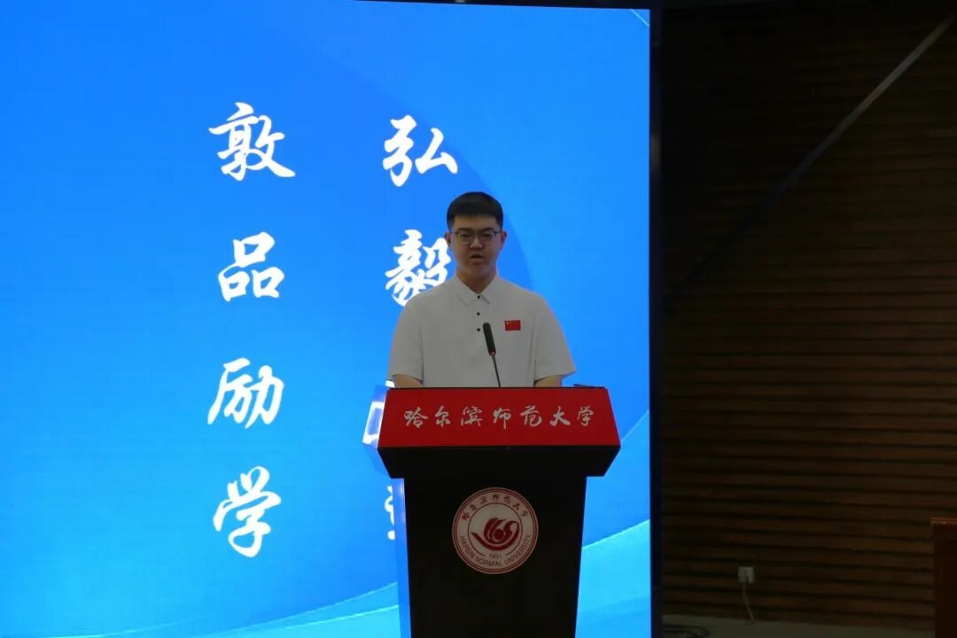 在校生代表、院学生会主席曲宏烨同学结合自身经历,鼓励同学们不忘初心、锤炼过硬本领,涵养家国情怀,为中华民族伟大复兴增砖添瓦。硕士研究生新生代表徐燃同学表示,将始终保持严谨的治学态度与饱满的学习热情,努力提升理论素养与学术能力,“沉下心”“抬起头”“挺直腰”,不负时代赋予青年马克思主义学习者的使命。本科生新生代表徐舒扬同学承诺,将严格遵守校规校纪,尽快适应大学学习生活,不断增强专业认同感,努力成长为有理想、有本领、有担当的马院学子。