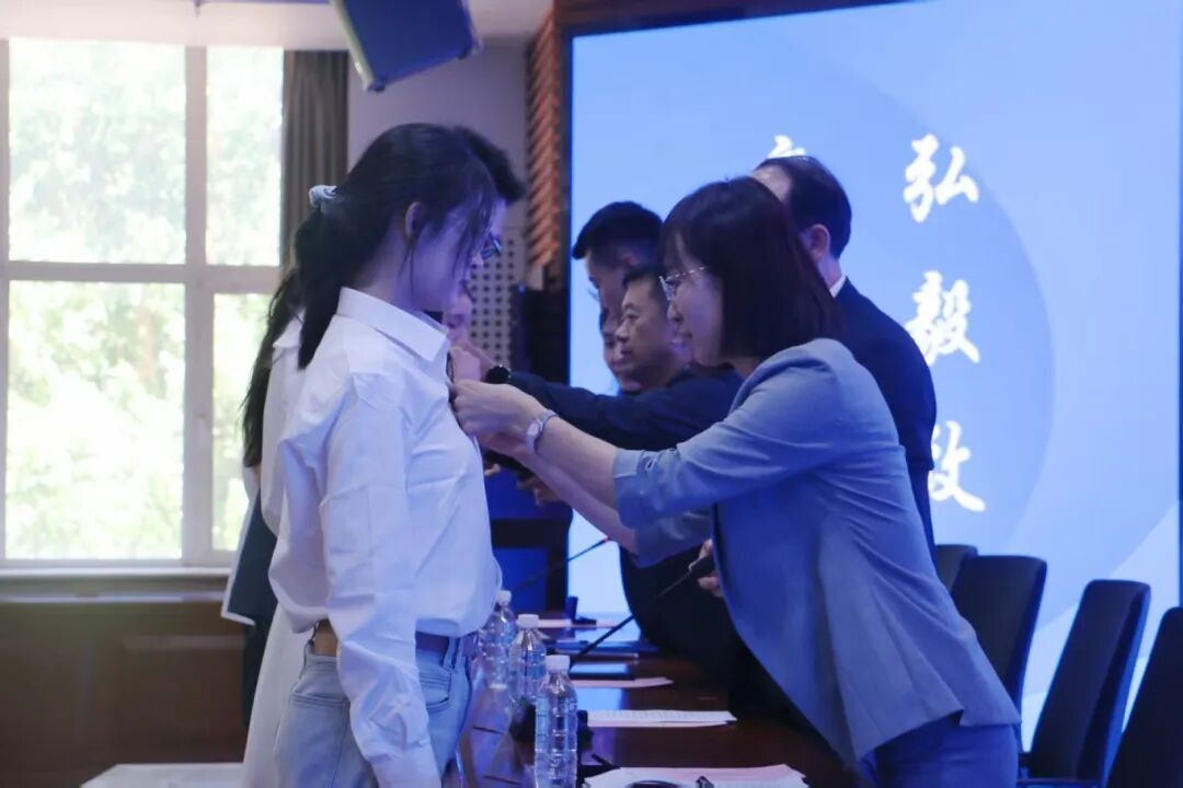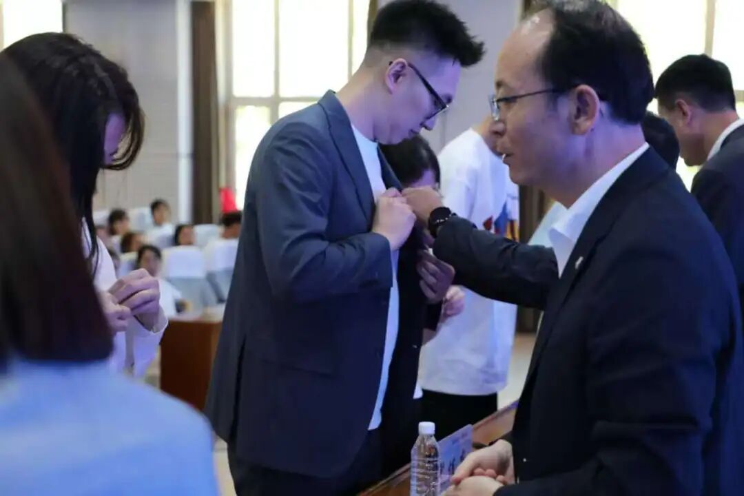 典礼在洋溢着青春气息的迎新纪录片中拉开帷幕。全体师生高唱中华人民共和国国歌,现场气氛庄重热烈。随后,与会教师为2025级新生代表佩戴院徽,“求是创新,正德厚生”的院训深深烙印在每一位新生的心中。