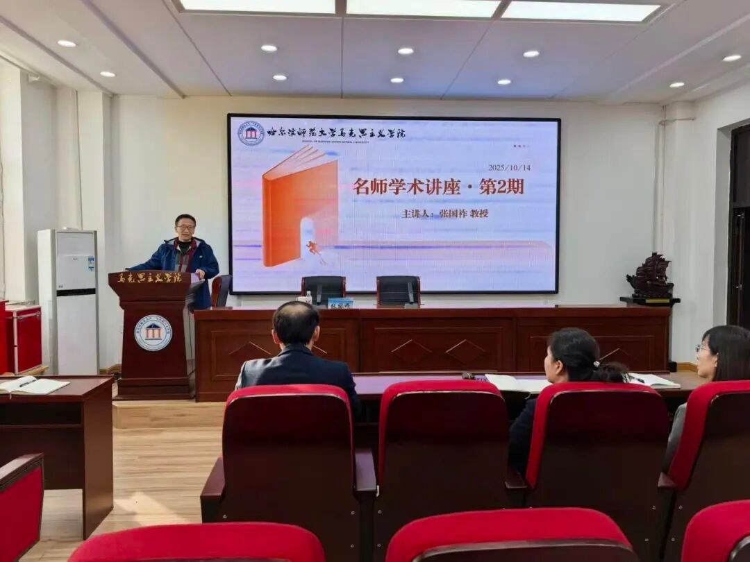 2025年10月14日下午,学院开展名师学术讲座,邀请中央马克思主义理论研究和建设工程首席专家、教育部全国高校思政课教学指导委员会咨询委员会委员、中国文化软实力研究中心主任,《文化软实力》主编张国祚教授为我院师生开展了题为《关于习近平文化思想的几个重要问题》的学术讲座。学院青年教师、博士研究生代表参加讲座,学院院长、博士生导师刘爱军教授主持讲座。