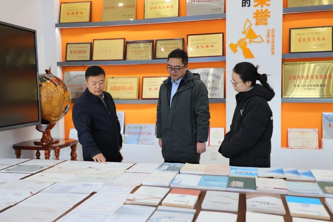 座谈交流前,周鹏参观了学院荣誉室、图书资料室、教研室及马克思主义学院建设成果展,深入了解我院的历史沿革、党的建设、学科建设、思政课教学、人才培养和社会服务等情况。