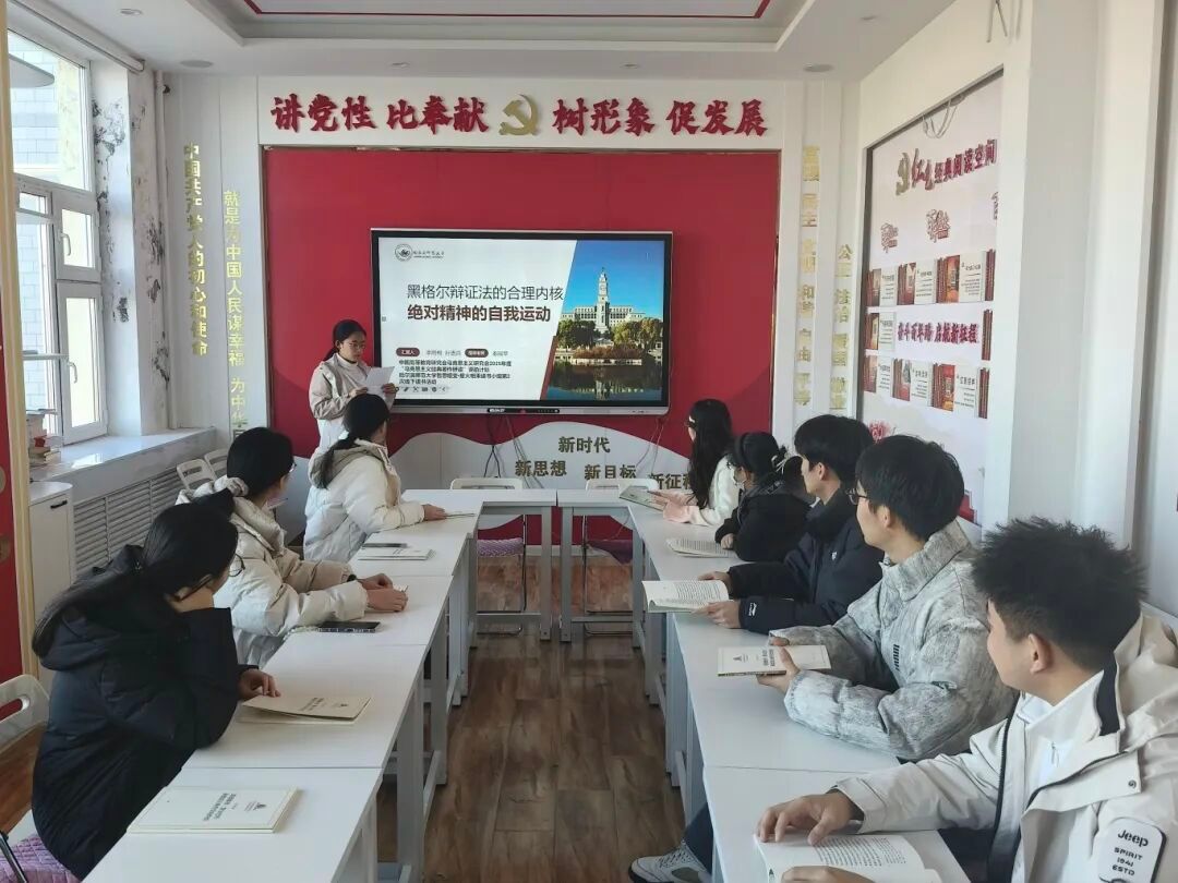 2025年11月19日,由中国高等教育学会马克思主义研究分会2025年度“马克思主义经典著作研读”资助计划支持的哈尔滨师范大学“哲思嬗变•星火相承”读书小组,在社科楼612教室成功举办了以“黑格尔辩证法的合理内核”为主题的第二次线下读书活动。本次活动旨在深入研读马克思主义哲学的理论来源,探究黑格尔辩证法的精髓与当代价值。活动由指导老师秦瑞苹全程指导,三位研究生旁听。